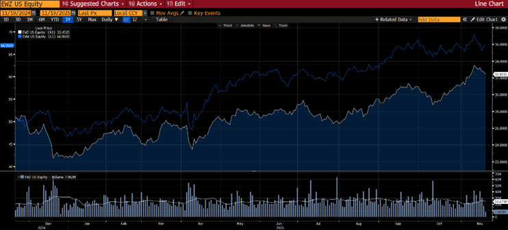 Fonte: Bloomberg. Dados de 19/11/2024 a 19/11/2025.