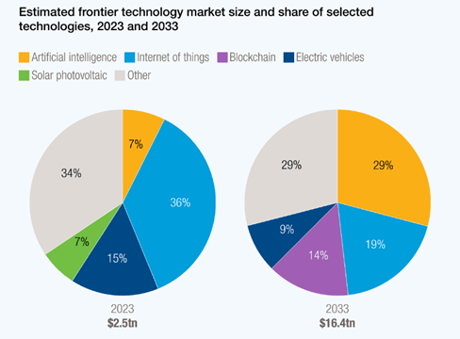 Figura 2 - Mercado global de tecnologias de ponta, em 2023 e 2033 (estimativa)