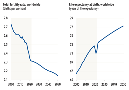 Figura 4 – Taxa de fertilidade e esperança média de vida até 2050