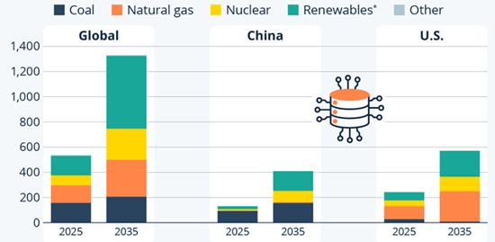Figura 8 – Procura de energia por Data Centers, por fonte de energia (em TWh)