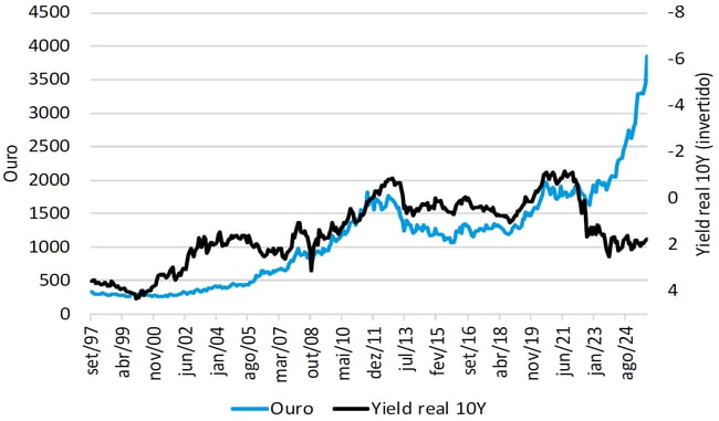 Figura 1 – Evolução do Ouro vs Yields Reais (10Y)