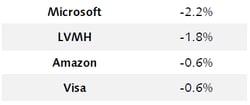 Em sentido oposto, no último trimestre, as acções da Microsoft, LVMH, Amazon e Visa tiveram um impacto negativo no desempenho do Fundo.
